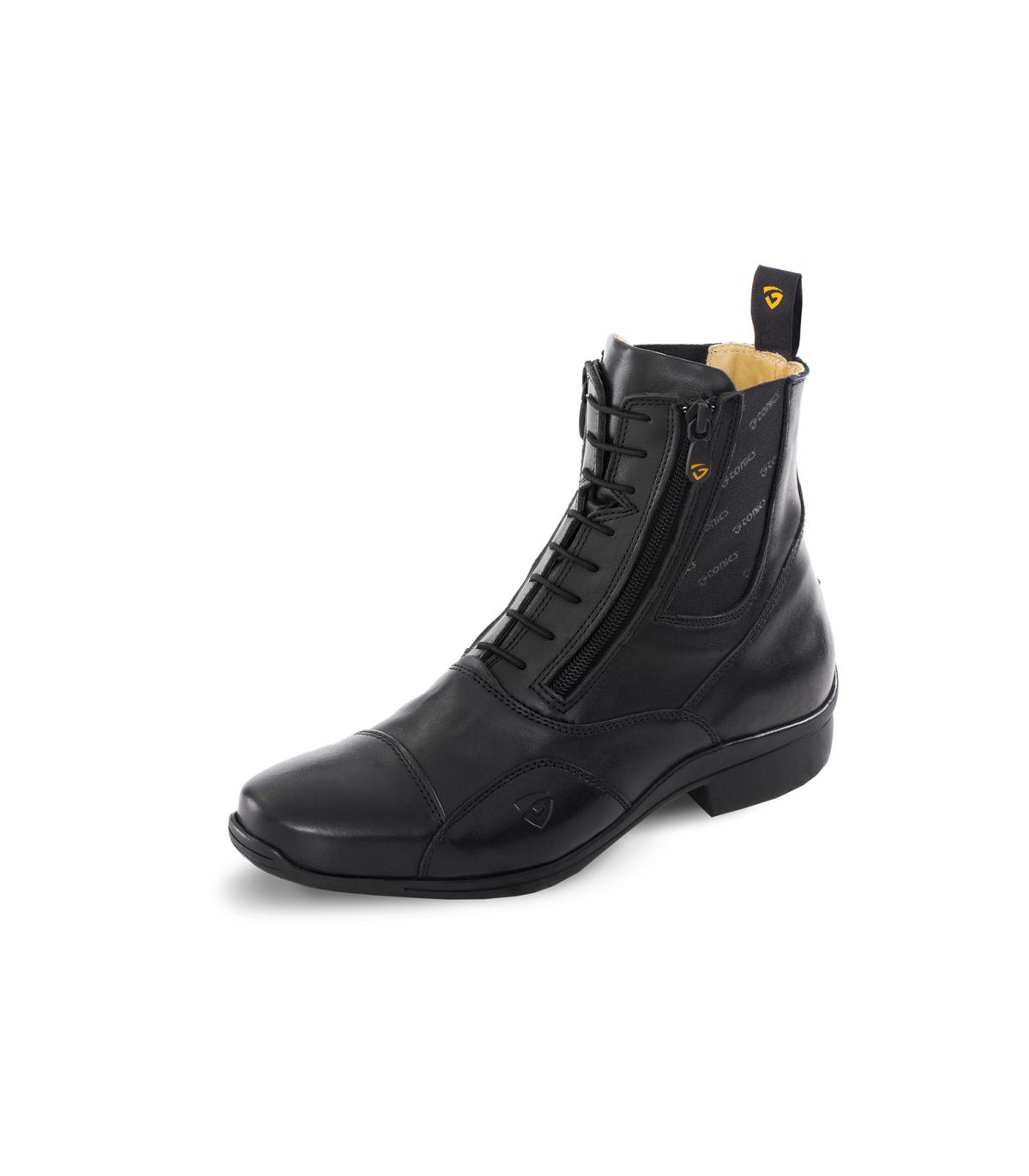 Avec la bottine "STARDUST" de "SILVER LABEL", TONICS présente une chaussure au look élégant grâce à la combinaison de laçage élastique décoratif et de doubles fermetures à glissière.